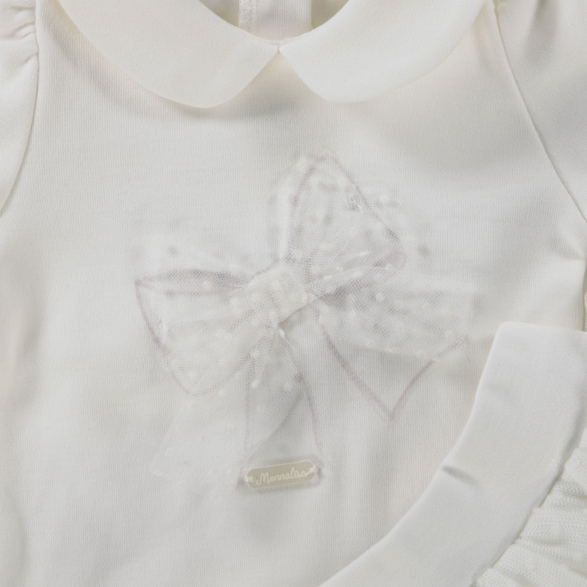 Ontdek de verfijning van het MonnaLisa Baby meisjes boxpakje in elegant off-white. De zachte stof omarmt jouw kleintje met comfort, terwijl de subtiele tule rok een vleugje sprookjesachtige charme toevoegt. Perfect voor speciale momenten, straalt dit boxpakje tijdloze klasse uit. De aandacht voor detail en vakmanschap maken dit stuk een onmisbare aanvulling op de garderobe van je kleintje. 🌟