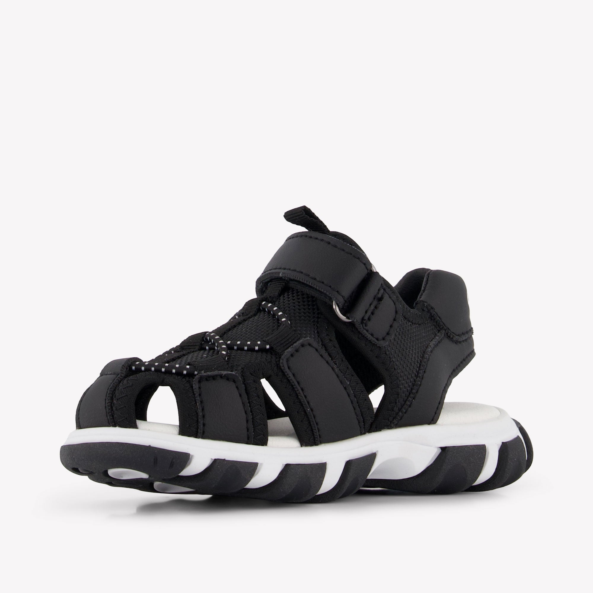 Laat je kleine jongen stijlvol en comfortabel de zomer doorgaan met deze zwarte sandalen van Calvin Klein. Het sportieve, gesloten design biedt optimale bescherming én bewegingsvrijheid, perfect voor avontuurlijke dagen buiten. De combinatie van ademende mesh en stevige materialen zorgt voor een lichtgewicht gevoel zonder in te boeten op kwaliteit. Met het herkenbare logo op de klittenbandsluiting straalt dit item subtiele luxe uit — ideaal voor modebewuste gezinnen. 🌞🖤
