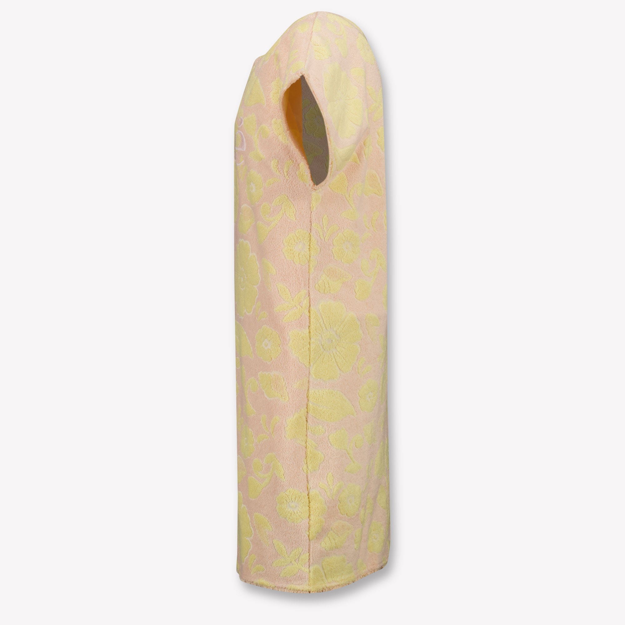 Laat je betoveren door de dromerige elegantie van deze lichtroze jurk van Chloé. Gemaakt van zachte towelling-stof en afgewerkt met een subtiel bloemenreliëf, voelt deze jurk net zo heerlijk aan als ze eruitziet. De minimalistische snit en het iconische logo op de borst geven het geheel een moderne, moeiteloos chique uitstraling 🌸. Perfect voor zomerse feestjes of een stijlvolle vakantiedag.