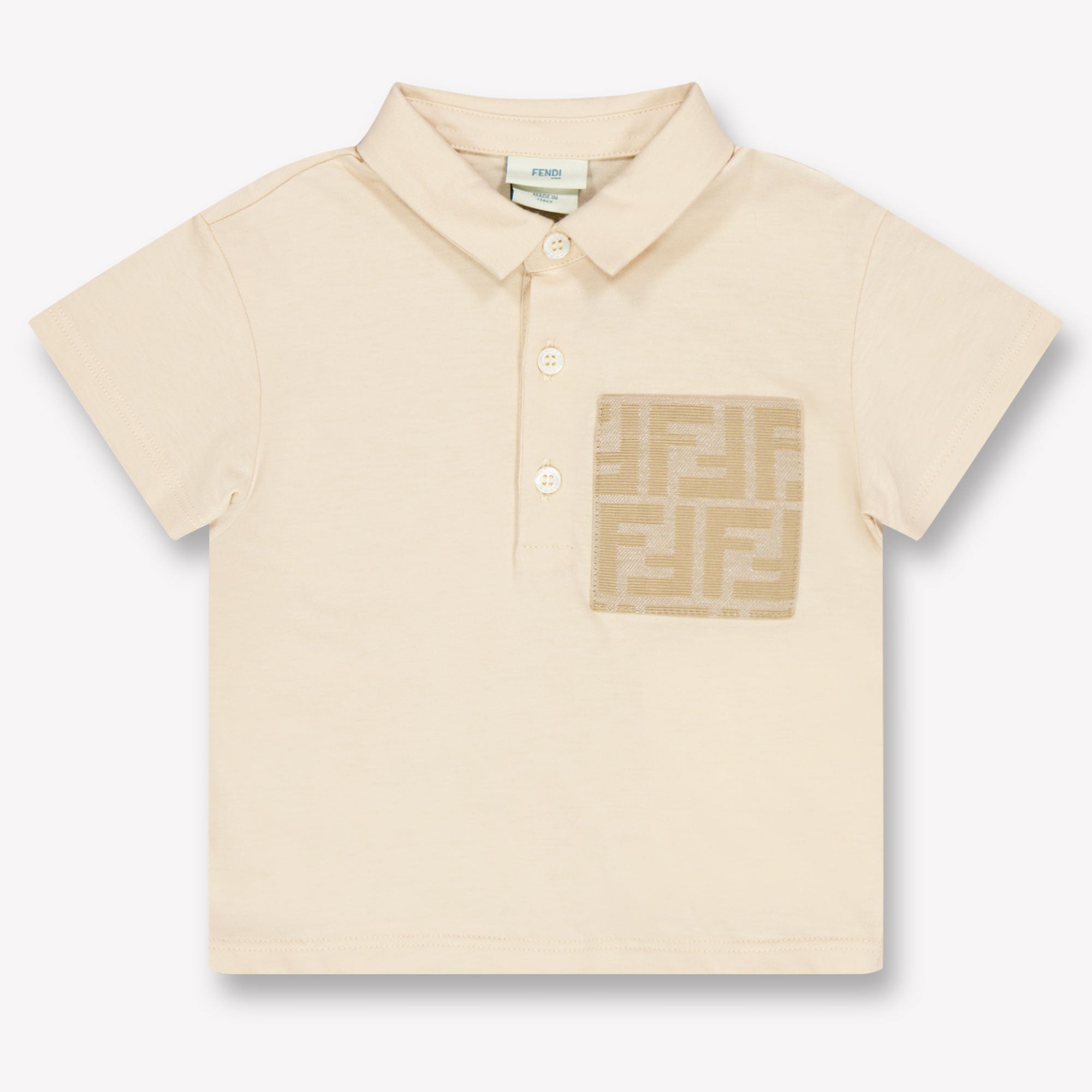 Ontworpen voor kleine trendsetters met een verfijnde smaak: deze Fendi polo in zacht beige is een stijlvolle essential voor elke zomergarderobe 🌞. Gemaakt van luxueus katoen en afgewerkt met een subtiel FF-logo op het borstzakje, straalt dit item ingetogen elegantie uit. De klassieke polo kraag en comfortabele pasvorm maken het een perfecte keuze voor zowel alledaagse momenten als bijzondere gelegenheden.
