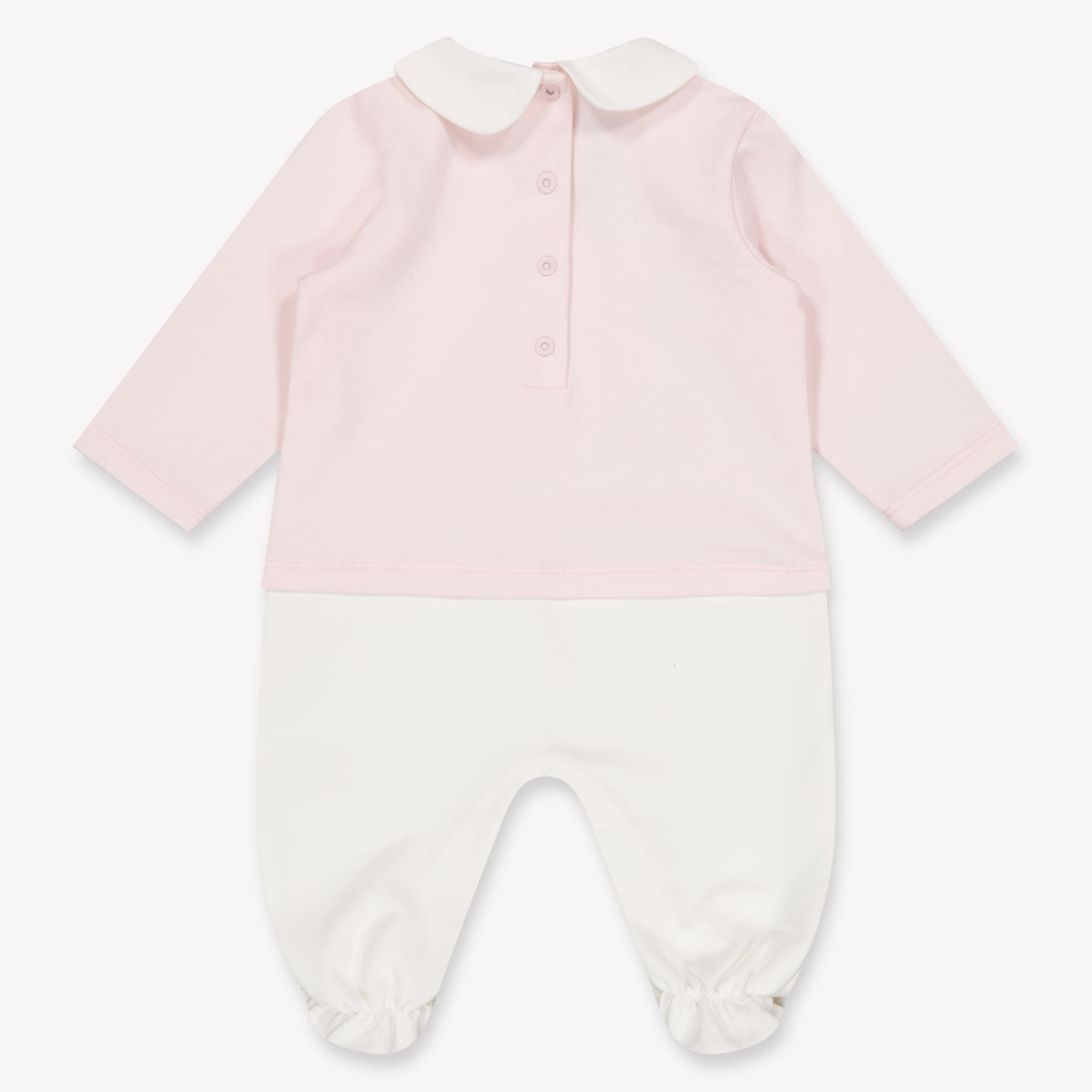 Een verfijnde start voor de allerkleinsten 🌸 – dit Fendi boxpakje in zacht pastelroze is pure luxe in miniatuur. Gemaakt van ultrazachte katoenmix en afgewerkt met een iconisch rocking horse-embleem, straalt het een tijdloze elegantie uit. De bijpassende muts en slabbetje maken het tot een perfect cadeau voor een stijlvolle nieuwe wereldburger. Comfortabel, slaapvriendelijk en ontworpen met aandacht voor elk detail.