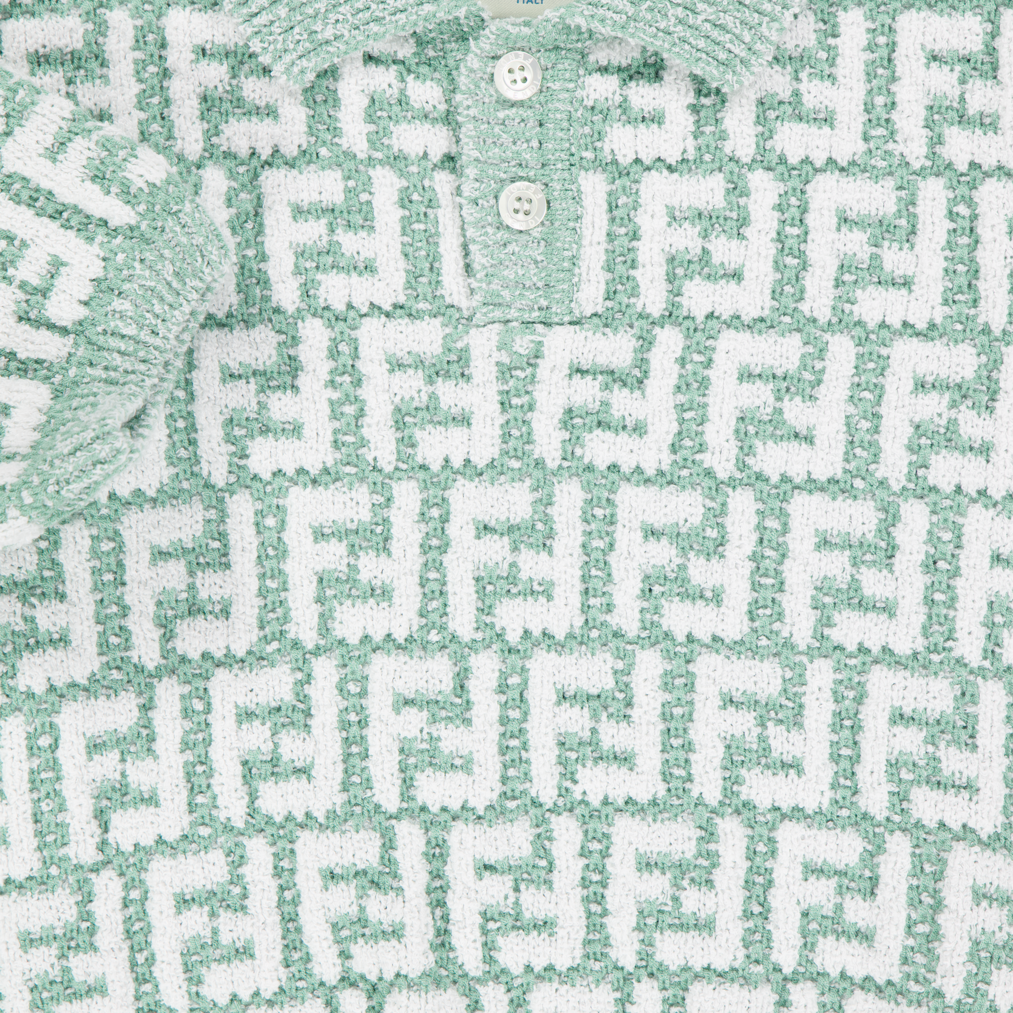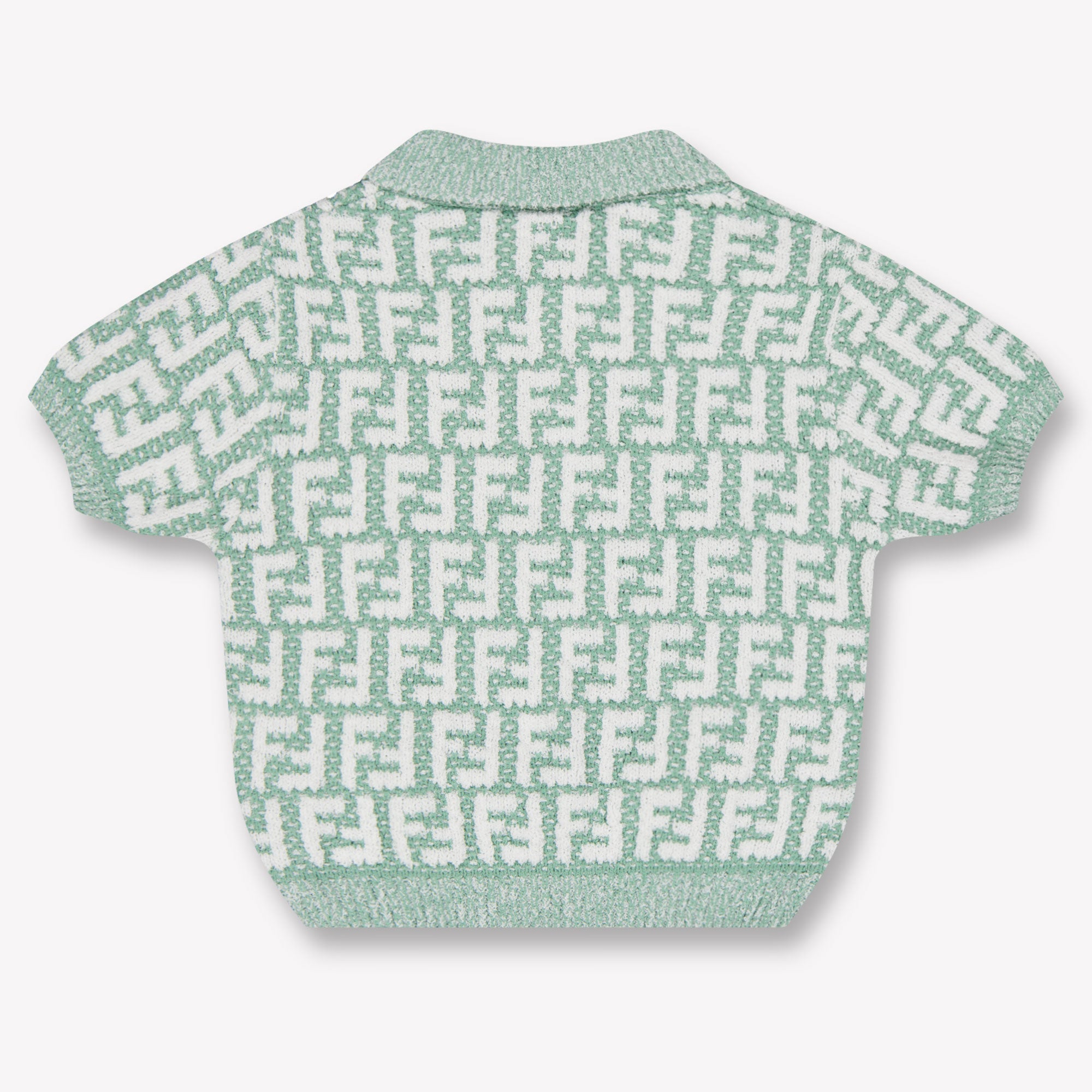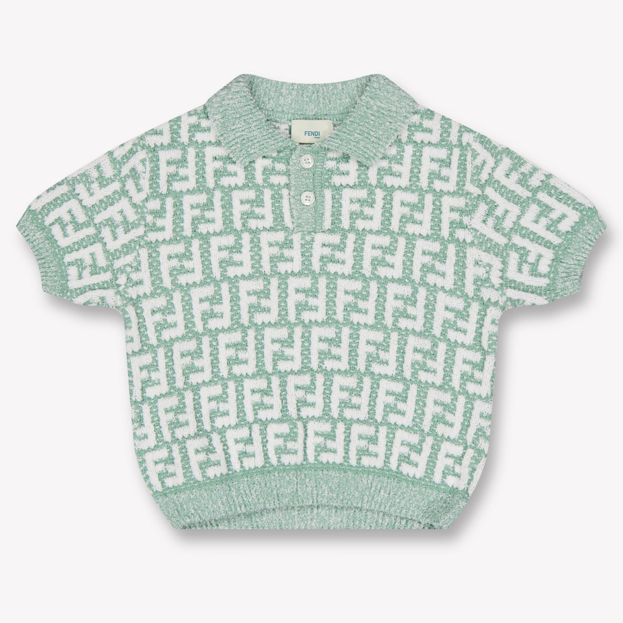 Laat je kleintje stralen in deze exclusieve unisex polo van Fendi Baby, uitgevoerd in een verfijnde lichtgroene tint. Gemaakt van een zachte, gebreide stof die heerlijk aanvoelt op de huid — perfect voor warme zomerdagen. Het all-over ingeweven FF-logo geeft een iconische uitstraling, terwijl de klassieke polokraag en korte mouwen zorgen voor een tijdloze, elegante look. ✨