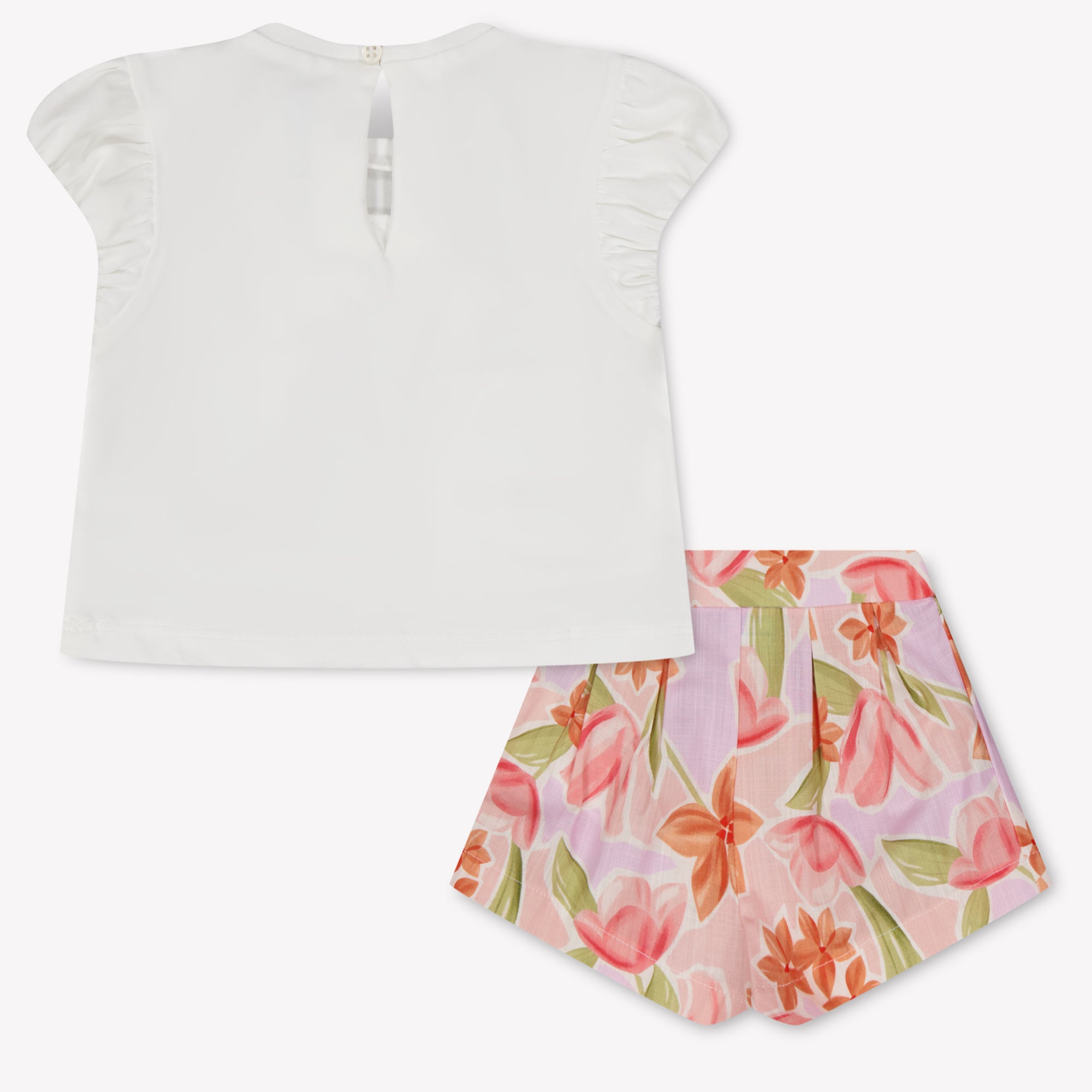 Laat je kleintje stralen in dit betoverende setje van Mayoral: een zomerse combinatie van lichtheid en elegantie. Het witte shirt met romantische 3D-bloemenapplicatie oogt verfijnd en fris, terwijl de luchtige short met aquarelachtige bloemenprint in lila en koraaltinten een speelse twist geeft 🌸. Perfect voor zonnige dagen, feestelijke momenten of een stijlvolle vakantie-outfit. Comfortabel, zacht en ontworpen met oog voor detail.
