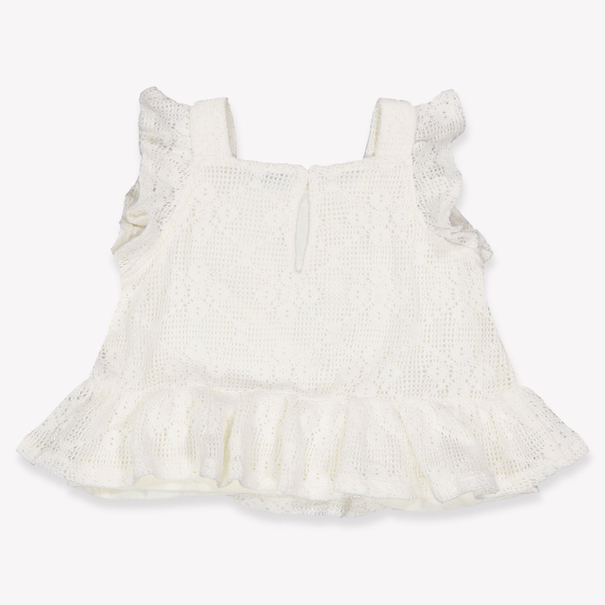 Deze verfijnde set van Mayoral is een droom voor elke kleine fashionista 👼. Het kanten topje met sierlijke ruches en het luchtige broekje in off white stralen pure elegantie uit. Perfect voor zomerse dagen, feestjes of een eerste vakantie aan zee. De zachte stof voelt heerlijk aan op de huid en biedt volop bewegingsvrijheid, zonder in te leveren op stijl. Een tijdloze keuze voor een verzorgd en speels silhouet.
