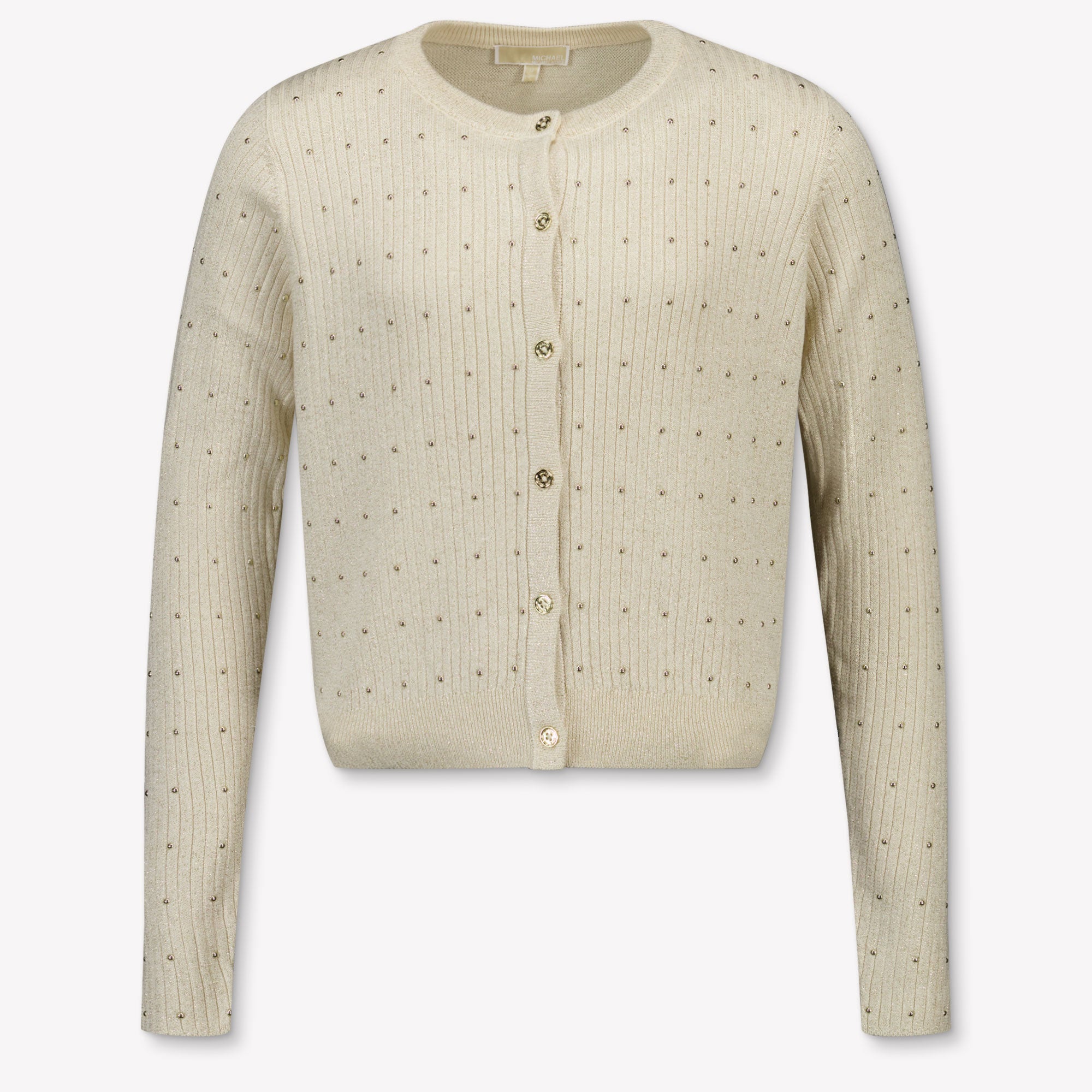 Voor de stijlvolle mini fashionista is dit gouden vest van Michael Kors een droomstuk. De subtiele glans, verfijnde ribstructuur en delicate studs zorgen voor een luxueuze uitstraling die elke outfit naar een hoger niveau tilt. De klassieke ronde hals en elegante knoopsluiting maken dit vestje perfect voor zowel feestelijke gelegenheden als dagelijkse flair. ✨