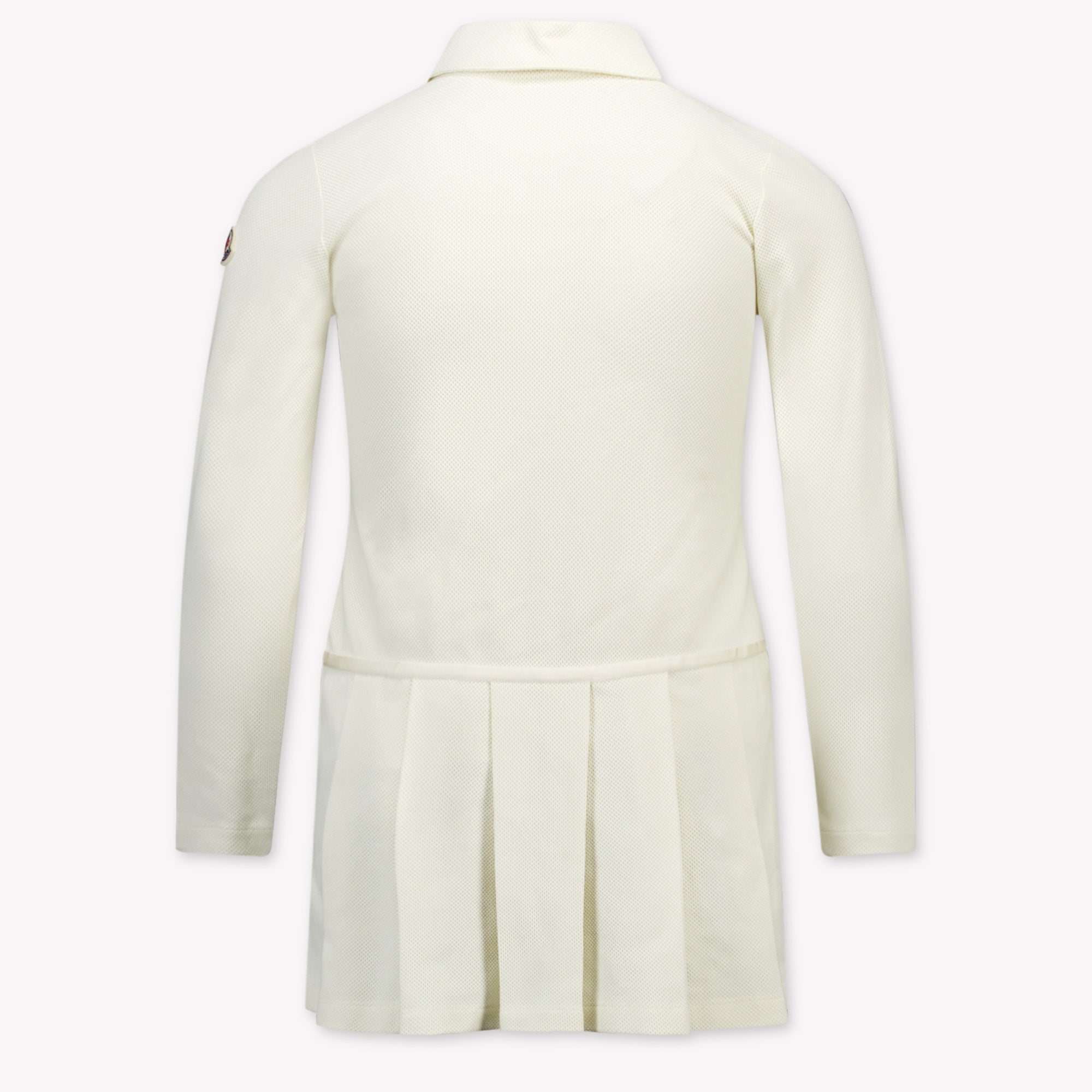 Ontdek de verfijnde elegantie van de Moncler kinderjurk in off white, een meesterwerk voor de jonge fashionista. De hoogwaardige stof omarmt haar met zachtheid, terwijl de subtiele plooien en lange mouwen een tijdloze allure uitstralen. 🌟
