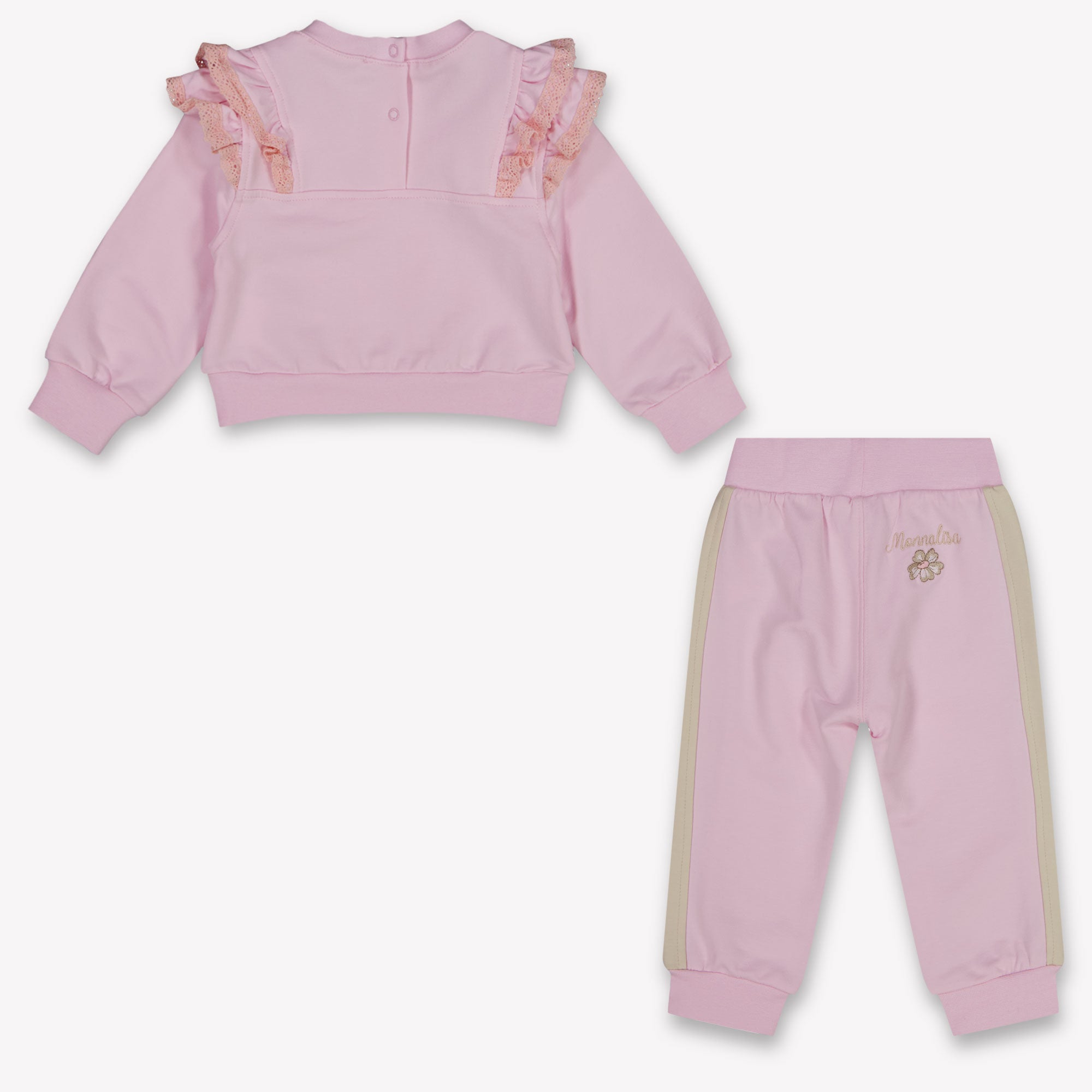 Ontdek het perfecte evenwicht tussen comfort en stijl met het MonnaLisa Baby Meisjes Joggingpak in Licht Roze. Dit betoverende ensemble combineert zachte pasteltinten met prachtige romantische details voor een tijdloze uitstraling. De luxueuze stof en het zorgvuldige vakmanschap zorgen voor een heerlijk draagcomfort, ideaal voor elke gelegenheid. Een must-have voor de modebewuste kleintjes! 🌸✨