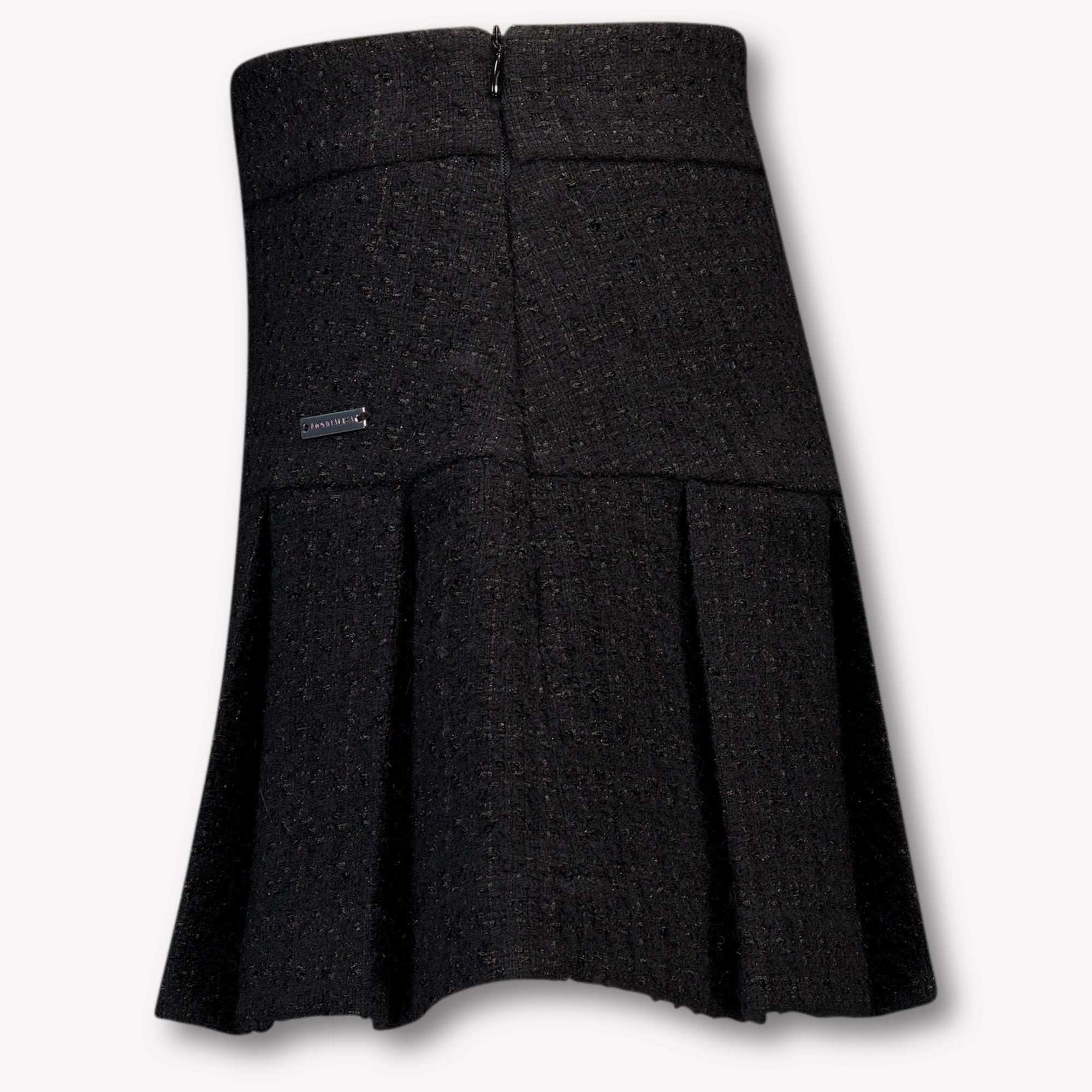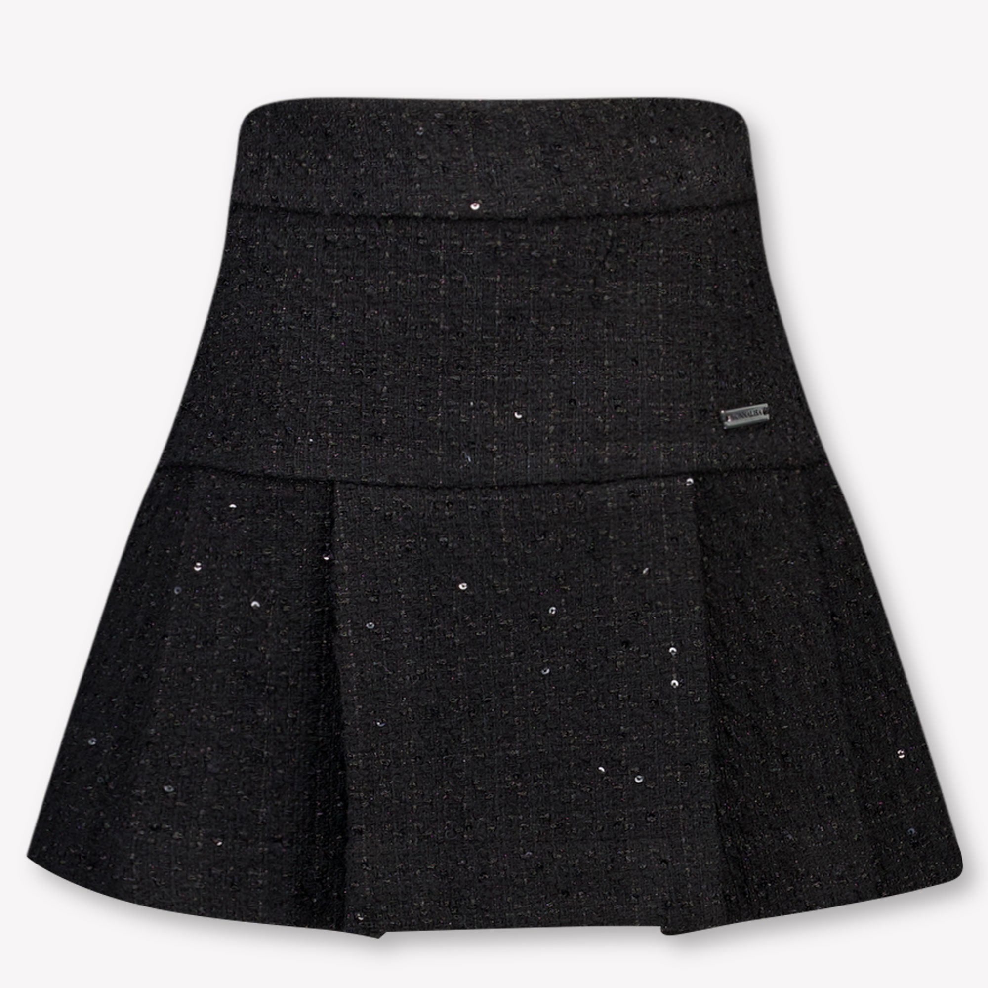 Ontdek een vleugje elegantie met het MonnaLisa kinder rokje in diep zwart. 🌟 Dit verfijnde kledingstuk is gemaakt van hoogwaardige tweedstof, subtiel versierd met glinsterende details die elke beweging doen stralen.