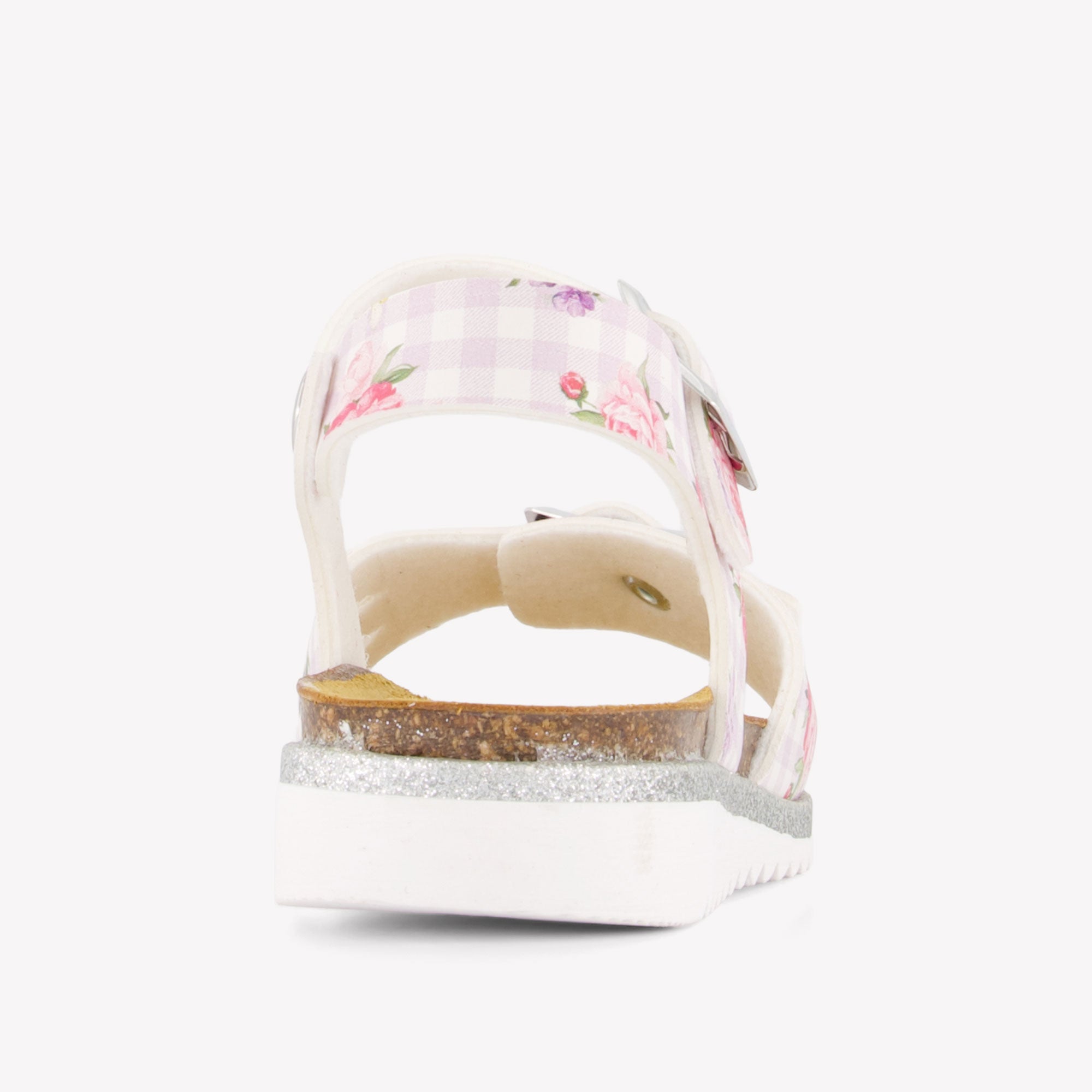Laat je betoveren door deze romantische MonnaLisa sandalen in zacht lila, ontworpen voor meisjes met oog voor stijl. Het verfijnde bloemenpatroon op een subtiel ruitmotief straalt pure elegantie uit, terwijl de zilverkleurige glitterzool elke stap een vleugje magie geeft ✨. Dankzij de verstelbare bandjes en comfortabele kurken zool zijn ze niet alleen prachtig, maar ook heerlijk om te dragen – perfect voor zonnige dagen en bijzondere momenten.